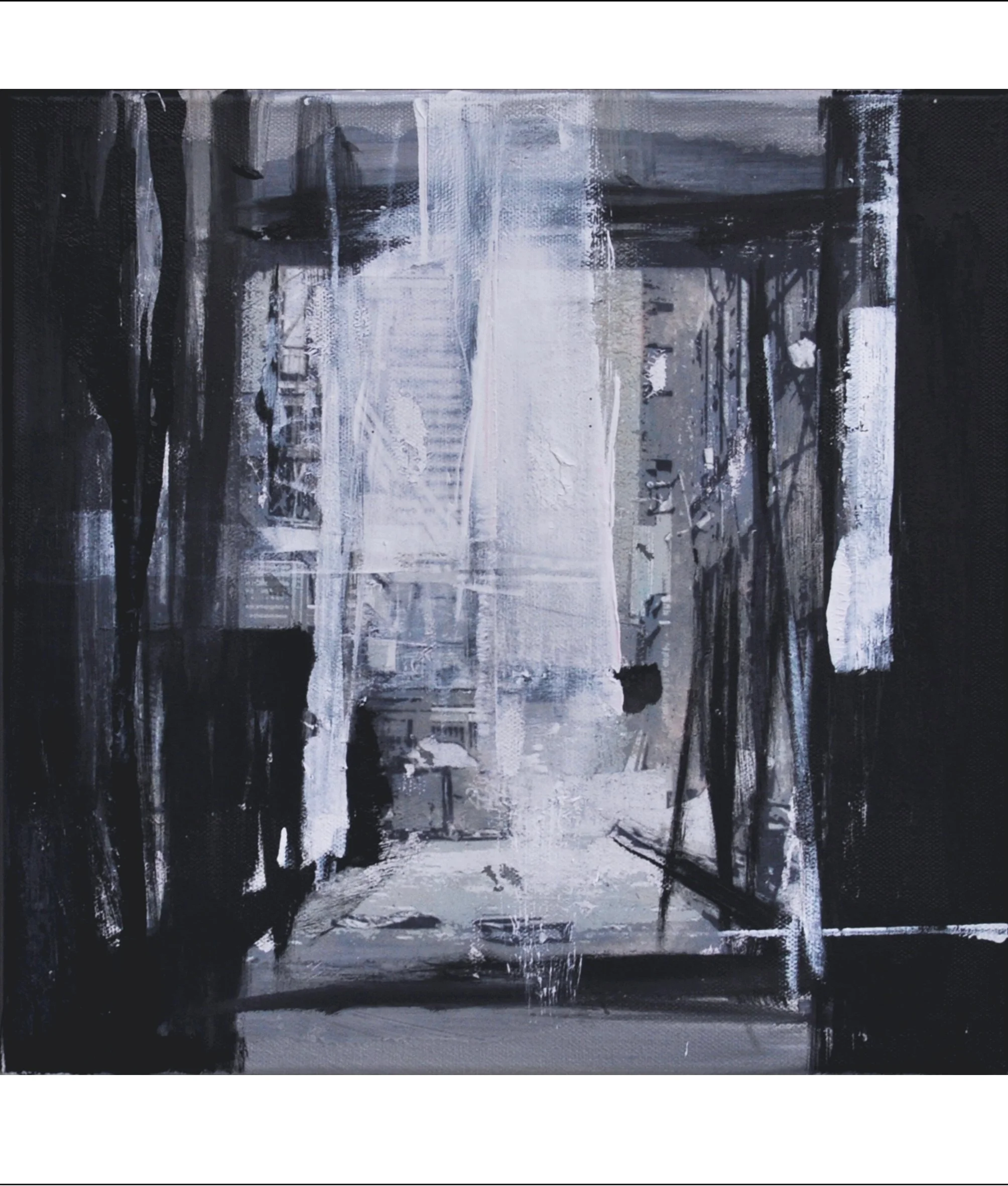 Niki Pennington East Village, 2024 | Acrylic and mixed media on canvas. Box framed | 500 × 500mm